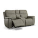 Transform your living space with the Sawyer power reclining loveseat with power headrests and lumbar, a perfect blend of comfort and style. This stunning design features high-quality, gray top grain leather upholstery with unique cross-stitching and a distinct arm silhouette, adding a sophisticated touch to any room. Customize your comfort with power recline, headrests and lumbar support at the touch of a button and experience Zero Gravity reclining, relieving pressure from your joints. The center console provides seat-side storage and a place to set your drinks. Designed for durability and longevity, this loveseat includes Flexsteel’s patented Blue Steel Spring™, providing unmatched seat comfort and durability that you can count on.