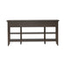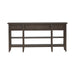 Turn an otherwise empty space into something extraordinary with the Paradise Valley hall console table. Crafted with Rubberwood solids and Split Heart White Oak veneers, this piece features a Saddle Brown finish. This hall console table offers breakfront styling for added design appeal. There are three full extension drawers with wood framed drawer fronts that are accented with Antique Pewter knob hardware. The square tapered legs have chamfered edges to soften the case and draw attention to the two open bottom shelves that are perfect for storage or display items. The Paradise Valley hall console table works great in the entryway or behind the sofa and captures grand opulence with comfortable rustic styling.