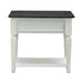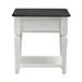 Enhance your space with the Allyson Park drawer end table. Crafted of pine solids and veneers with cathedral white oak tops, this piece features a wire brushed white finish with a planked charcoal top, one wood framed full extension drawer accented with antique pewter knob hardware, a bottom shelf for additional storage, and is anchored by square tapered legs. This classic end table would make a gorgeous addition to your casual styled home.