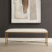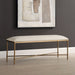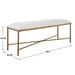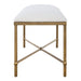 Thoroughly modern yet inspired by the classics, this bench displays a stylish iron frame in a rich antique gold finish, upholstered in a crisp white textured fabric.