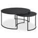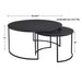 With modern minimalist styling, these nesting coffee tables feature textured cast aluminum tops in an oxidized black finish, on aged black forged iron bases. S- 24"x 16"x 24", L- 35"x 17"x 35"