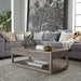 Furnish your home, furnish your life with the Bartlett Field cocktail table. Crafted with excellence using rubberwood solids with split heart white oak veneers, this cocktail table features a Dusty Taupe finish. The cocktail table has two full extension drawers with reeded textured drawer fronts that are accented with custom Antique Pewter finger pull hardware. The large bottom shelf is great for extra storage or display items. Casters ensure this cocktail table is easily movable. The square block legs along with clean lines add for a contemporary feel. Convey energy and imagination with the Bartlett Field cocktail table.