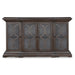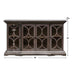 Craftsman built with breakfront styling, carved molding details, and elegant Paris silver finish, a subtly metallic silver over a walnut finished fine wood grain with clear glass doors.