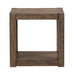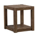 Seamlessly blend form and function with the Broadmore square chairside table. Crafted with excellence using Pine solids with Rustic Birch veneers, this piece features a Cobblestone Brown finish. The block raised legs serve as a solid and stylish foundation, adding a contemporary flair to the table. The clean lines and geometric simplicity create a harmonious balance, making it a versatile addition to any room in your home. The planked top steals the spotlight with its high-low veneer pattern, introducing a captivating texture that plays with light and shadow. The block legs gracefully flow to an open bottom shelf, providing additional space for storage or display. Embrace a new level of sophistication and practicality with the Broadmore square chairside table.