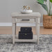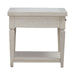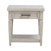 Create the space you’ve always desired with the Caruso Heights end table. Meticulously crafted using Rubberwood and Poplar solids with Split Heart White Oak veneers, this table features a Whitestone finish. At its heart, the end table features one storage drawer, adorned with a wood-framed drawer front that exudes warmth and sophistication. Accented with Antique Bronze bar pull hardware, the drawer is as beautiful as it is functional, offering a convenient space to store remotes, coasters, or other small items within easy reach. But the practical features of this table don't end there. Square block legs and tapered feet provide a sturdy base for the table, their clean lines adding a touch of modern flair to the overall design. Flowing seamlessly from the tabletop, these legs lead to an open bottom shelf, offering ample space for storing and displaying your favorite books, magazines, or decorative items. Whether placed beside a sofa or armchair, the Caruso Heights end table is sure to become a versatile addition to any room. Its classic design and thoughtful features make it the perfect companion for any seating arrangement, providing both style and functionality in equal measure.