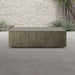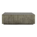 Featuring a low profile, this modern coffee table is layered in a warm metallic gray finished veneer with a floating pedestal base.