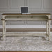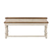 Accent your space with the Morgan Creek console bar table. Crafted of poplar solids with pine and birch veneers, this piece features an antique white finish with spatter and watermark accents with a wire brushed tobacco planked top, appealing pewter nail head corner accents, three cubbies for additional storage, anchored by round turned legs. This one-of-a-kind console bar table will bring a warm luxurious feel to any traditional space, perfect for behind your sofa.