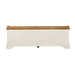Morgan Creek storage hall bench is a warm welcome to an entry hall, mud room or family room. Two spacious full extension drawers provide concealed storage while keeping your room tidy. Crafted of poplar solids with pine and birch veneers. Added design elements with bead molding on the drawer and gallery rail runs along the side and back of the top. Features an antique white finish with a wire brushed tobacco top.