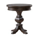 Create an unforgettable setting of casual elegance with the Paradise Valley round chairside table. Crafted with Rubberwood solids and Split Heart White Oak veneers, this piece features a Saddle Brown finish. The chairside table has a beautiful blue stone insert on the top that radiates a natural earthy feel. Bead molding runs along the apron of the table and flows to a square turned pedestal base supported by bracket feet that are accented with bead molding. The Paradise Valley round chairside table captures grand opulence with comfortable rustic styling.