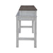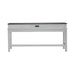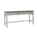 Create a calm and peaceful oasis with the River Place console bar table. Crafted with Pine solids and veneers, this piece features a heavily distressed two-tone Riverstone White and Tobacco finish. This console bar table has a built-in charging station complete with two electrical outlets, one USB port, and one USB-C fast charging port for all your electronic needs. The top features a high-low veneer pattern for textural interest. Perfect to place behind the sofa for additional seating, the River Place console bar table strikes the perfect balance of life on the coast and a comfy home tucked away in the hills.