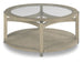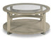 Elevate your living space with the Solstice Round Coffee Table, a harmonious blend of form and function. Crafted from exquisite White Oak veneers and select hardwoods, this elegant piece boasts a sleek inset glass top that adds a touch of sophistication while protecting the beautiful wood beneath. The table's circular design promotes easy conversation flow and lends a sense of unity to your room. A convenient lower shelf provides ample storage for books, magazines, or decorative items, keeping your space tidy and organized. Mounted on smooth-rolling casters, this versatile table effortlessly glides across your floor, allowing you to reconfigure your space with ease. Whether serving as a centerpiece in your living room or a stylish accent in your den, the Solstice Round Coffee Table is sure to become the sun around which your décor orbits.