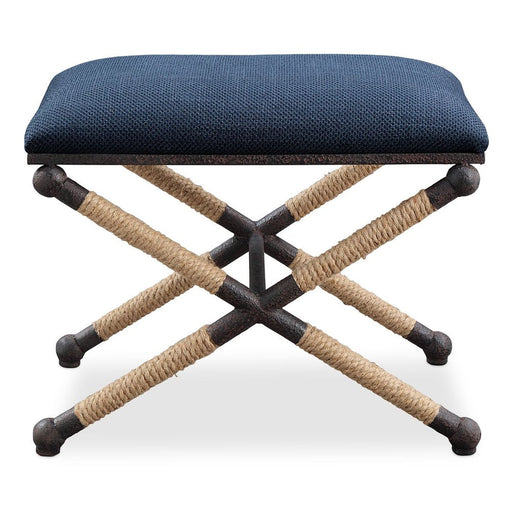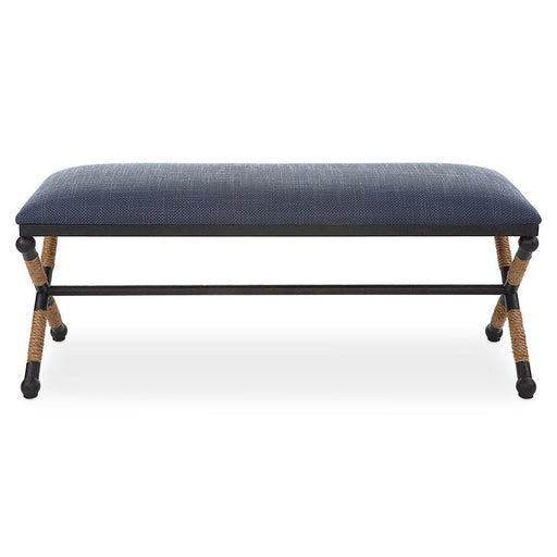 UttermostRustic iron frame with a nautical touch, wrapped in natural fiber rope accents. Cushioned top is a cotton blend in a rich textured navy blue.Specif...