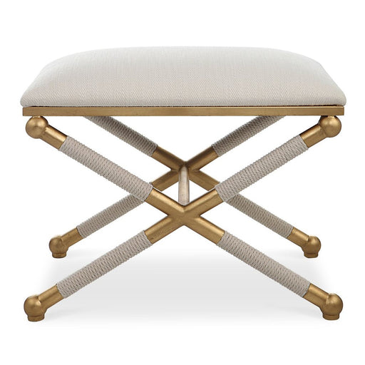 UttermostWith classic simplicity, this small bench features a smooth iron base finished in an elegant gold leaf with braided white rope detailing, upholster...