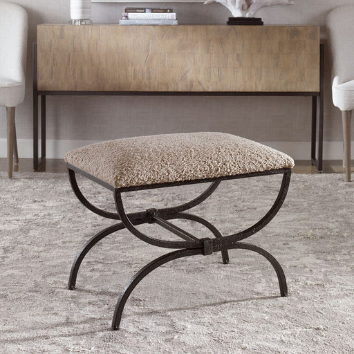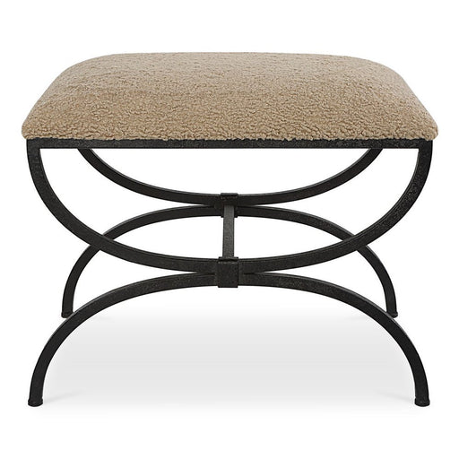 UttermostInfluenced by Spanish architecture, this small bench features a heavily textured iron base finished in aged black topped with a plush faux shearlin...