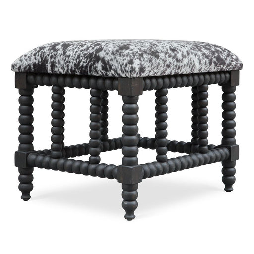 UttermostRanch and modern lodge styles converge to create this plush, upholstered bench. The cushioned seat is wrapped in a charcoal gray and white faux cow...