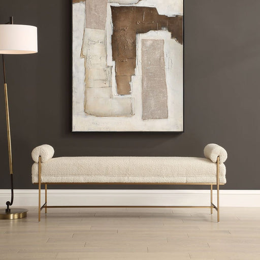 UttermostLush and inviting, the Caliste bench displays an elegant and well tailored look upholstered in a textured boucle polyester in ivory. Finished with ...