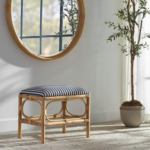 UttermostA refreshing coastal accent featuring a casual cotton blend navy and white striped seat, over a naturally finished solid wood base with rattan wrap...