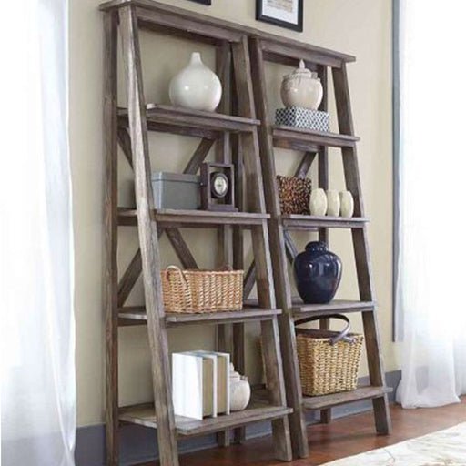 UttermostThis six-shelf design offers fun display options with staggered multi-level shelving using reclaimed pine framed in iron with an aged black finish....