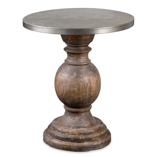UttermostNaturally weathered, reclaimed fir wood pedestal accented by an aluminum sheeting-clad table top. Solid wood will continue to move with temperature...
