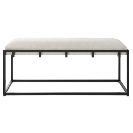 UttermostA classic and sophisticated color combination, this bench features a sleek matte black iron frame and is paired with a plush upholstered seat in a ...