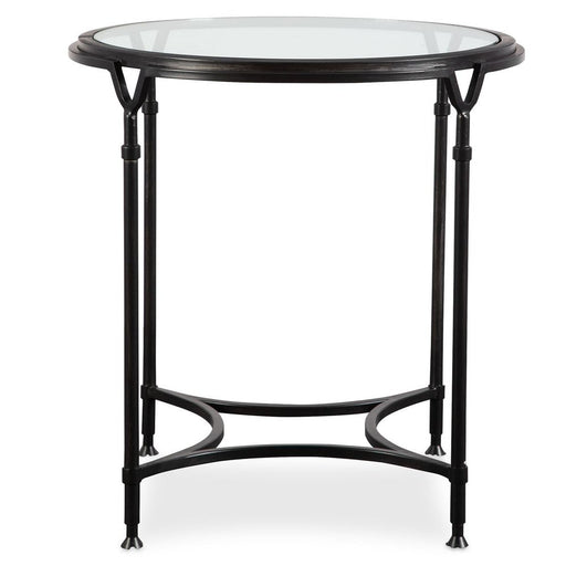 UttermostFeaturing equestrian inspired lines, this hand forged steel side table is finished in aged black, with a clear tempered glass top.Specifications F...