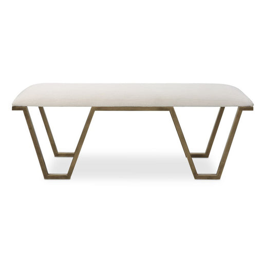 UttermostClassic and sophisticated, this accent bench features a geometric iron base in antique gold leaf with an upholstered seat in a crisp white textured...