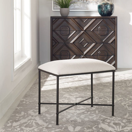 UttermostWith classic simplicity, this small bench features a smooth iron base finished in satin black, upholstered in a crisp textured white polyester.Spec...