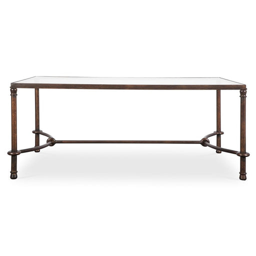 UttermostInspired by ancient horse bridles, this forged iron coffee table is a blending of rings and curves finished in rustic bronze patina. The top is mad...
