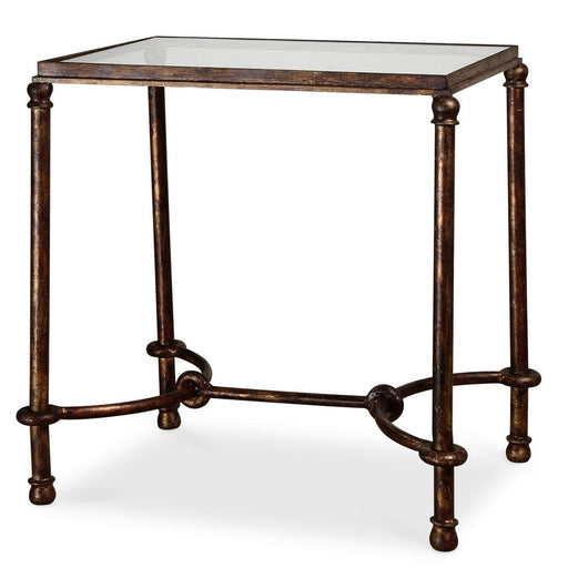 UttermostInspired by ancient horse bridles, this forged iron end table is a blending of rings and curves finished in a dark rustic bronze patina. The top is...