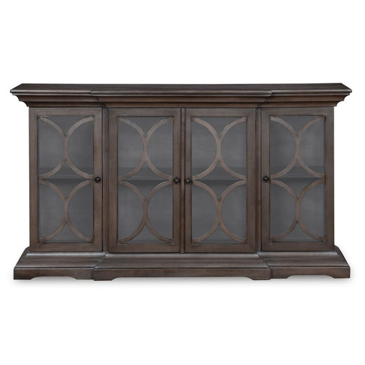 UttermostCraftsman built with breakfront styling, carved molding details, and elegant Paris silver finish, a subtly metallic silver over a walnut finished f...