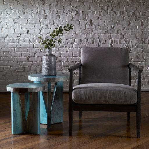 UttermostMade from solid tamarind wood, this set of two nesting tables features strong angular lines with beautiful spalting in a rich blue-green stain. Sol...