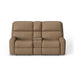 Simply Supportive Take comfort to the next level with the Arlo Power Reclining Loveseat with Console. Available in our premium leather, this loveseat will add refinement to any living space. The spacious center console includes storage for glasses, magazines and other personal items and features two cup holders. Easy-to-access power controls with built-in USB charging ports in both arms allow you to independently adjust the headrest and recline, dialing in the right level of comfort for each person. Designed for optimal support, Arlo has pull-tufted, triple-divide back cushions that cradle your head, neck and lower back. Contoured seats take pressure off your legs as you sit, while our patented DualFlex Spring System™ provides firmness and flexibility. Rounded pad-over track arms provide a comfy place to rest your forearms—great if you’re spending hours gaming or streaming movies. To make Arlo your own, choose from more than 50 leather or leather match options. Storage console houses snacks, remotes and other personal items Two drink holders keep beverages close at hand Power controls on both arms effortlessly adjust the recline, keeping you comfortable Home button returns the headrest and footrest to their original positions with one touch USB charging port built into power control keeps devices powered up and ready to use Divided back cushions cradle your neck, back and lower lumbar for enhanced comfort Streamlined inset padded armrests have a seamless look and comfortable feel Built to last with our patented Flexsteel DualFlex Spring System™—sturdy steel ribbons attached to flexible coils that offer a wide range of motion and durability High-density cushions consist of a high-resiliency, high-density polyurethane foam core with a soft fiber wrap that ensures comfort as you sit and recline Available in over 50 leather options to suit any décor Removable back allows for easy lifting and maneuvering through doorways Model Number: 3904-601H Dimensions 42H x 76W x 39L