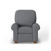 Simple, Classic Tailoring in a Timeless Style Showcase your home with the timeless charm of the Thornton high-leg recliner. Smoothly rolled edges and arms, tapered block legs, and a welt-corded trim make it the quintessential living area piece. Offered in your choice of fabric, this recliner provides the style and comfort that has made it one of our long-time best sellers. Transitional style with rolled arms and a welt-corded trim detail Smoothly recline back for added comfort and relaxation Upholstered in your choice of fabric, including those with performance and sustainability characteristics The patented Blue Steel Spring™ seat system provides unmatched support and lasting comfort Sustainably-sourced, kiln-dried wood frame with mortise and tenon joinery for lasting strength and durability High resiliency seat cushion is engineered to maintain its shape over time Fiber-filled, semi-attached back cushion is designed to stay in place for a tidy appearance Square tapered legs are available in three finish options Handcrafted in North America Model Number: 5535-503 Dimensions 41H x 38W x 39L