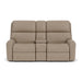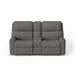 Whether you’re watching movies or playing games, the Rio Power Reclining Loveseat with Console makes it easy to recline and puts items like remotes and beverages close at hand. The spacious center console includes storage for glasses, magazines and other personal items and features two cup holders. Easy-to-access power controls with built-in USB charging ports in both arms allow you to independently adjust the headrest and recline, dialing in the right level of comfort for both people sitting. Designed to enhance your well-being, Rio has divided back cushions that provide comprehensive back support. Inset padded armrests take pressure off your forearms, while our patented Flexsteel DualFlex Spring System™ provides firmness and flexibility. To make this Rio sectional your own, choose from over 250 fabrics options, all in our cleanable, durable high-performance fabric.