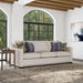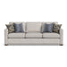 A Legacy of Luxury Timeless sophistication meets modern versatility with the Milo three-cushion sofa, a spacious and upscale piece that is curated to fill larger spaces with coziness and is built to last for generations. Featuring softly sloped arms with French seams, thoughtful welt detail on the seat cushions, hand-applied nailhead trim, and included accent pillows; customize this sofa with hundreds of fabric choices. For distinctive style designed to be everlasting, look no further than Milo. Large-scale frame features deep seats for spacious comfort Softly sloping arms with French seams Tasteful nailhead trim along the bottom rail, available in four finish options Square-tapered legs, available in three finish options Includes four accent pillows in your choice of fabric to match your personal style Built to last with Flexsteel’s Blue Steel Spring™ seat system providing unmatched support and durability Reversible, high-density foam core seat cushions, engineered to maintain their shape over time, complete with a layer of recovery foam for everlasting quality and luxurious comfort Loose, box back cushions can be flipped and rotated Sustainably sourced, kiln-dried wood frame with mortise and tenon joinery for lasting strength Upholstered in the expertly tailored fabric of your choice, including high-performance and sustainable options Handcrafted in North America Model Number: 7051-32 Dimensions 37H x 97W x 39L