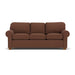 Simple, Classic Tailoring in a Timeless Style Showcase your home with the timeless charm of the Thornton sofa. Smoothly rolled edges and arms, tapered block legs, and a welt-corded trim make it the quintessential living area piece. Offered in your choice of leather or Kashmira, this sofa provides the style and comfort that has made it one of our long-time best sellers. Transitional style with rolled arms and a welt-corded trim detail Upholstered and expertly tailored in your choice of leather or Kashmira fabric The patented Blue Steel Spring™ seat system provides unmatched support and lasting comfort Sustainably-sourced, kiln-dried wood frame with mortise and tenon joinery for lasting strength and durability High resiliency seat cushions are engineered to maintain their shape over time and are removable for easy cleaning and rotating Fiber-filled, semi-attached back cushions are designed to stay in place for a tidy appearance Square tapered legs are available in three finish options Handcrafted in North America Model Number: 3535-31 Dimensions 38H x 86W x 35L