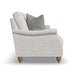 A Fresh Take on Timeless Style Traditional elegance gets a fresh reinterpretation with the Veda sofa. The petite, pleated roll arms slope down onto stately legs, delivering timeless details and graceful curves that soften the room while adding an abundance of charm. Generous seat space, cushion fill choices, and the Blue Steel Spring at the heart of each seat ensure lasting comfort. And bring your room together with four accent pillows, orderable in your choice of fabric. Pleated, petite roll arms with soft curves for an elegant touch Choose from a round turned or square tapered leg, available in three finish options Includes four accent pillows in your choice of fabric to match your personal style The patented Blue Steel Spring in the seat provides unmatched support and lasting comfort Constructed with a premium, durable 5-layer wood frame The removable and reversible seat and back cushions allow you to flip and rotate them for even wear The seat cushions have a high resiliency foam core that is engineered to maintain its shape over time and contain a layer of recovery foam and a soft fiber top for luxurious comfort. An upgrade to Featherblend fill is available Upholstered in your choice of fabric, including those with performance and sustainability characteristics Handcrafted in North America Model Number: 7171-31 Dimensions 36H x 86W x 37L