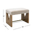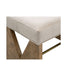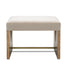 The Laurent Accent Stool features a distinctive V-cut pattern on its base, complemented by a sleek brass crossbar for added elegance. Upholstered in a neutral light fabric, it offers both style and comfort. This versatile piece blends modern design with subtle sophistication, making it a perfect accent for any space.