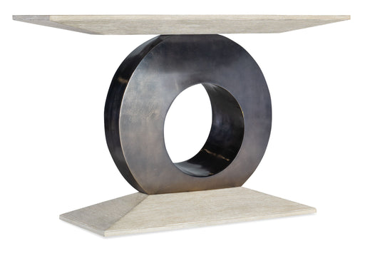 Hooker FurnishingsBold, organic and geometric, the Modern Mood Accent Table has a rectangular shape with a dramatic metal-wrapped circle base. Crafted of Quartered O...