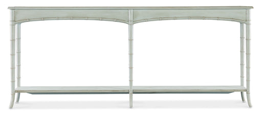 Hooker FurnishingsA cream-colored textured finish is paired with a curvy curled-ribbon-like base to create a narrow rectangle-shaped table that is chic, casual and t...
