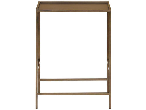 Universal FurnitureThe Metal Side Table features sleek design with a distinctive tray top and a minimal geometric frame in Smoked Gold finish. This compact accent pie...