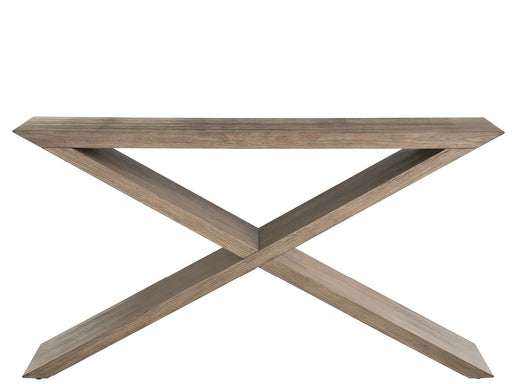 Universal FurnitureThe Cross Console makes a striking statement with its architectural X-base design, finished in a warm. Its clean lines and minimalist silhouette cr...