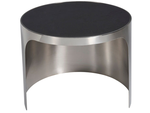Universal FurnitureThe Revolve Small Nesting Table features a smooth, cool black granite top in a rounded shape, elegantly resting on a Polished Nickel base. This pie...