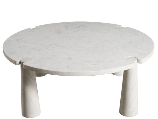 Universal FurnitureThe Anniston Cocktail Table stands as a pinnacle of ultra-modern design with its round silhouette and a body entirely crafted from White Banswara, ...