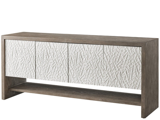 Universal FurnitureAdjustable shelves behind geometric-patterned doors offer ultimate storage flexibility.Product Features 4 Doors w/ Shattered Earth finish 2 Adjusta...