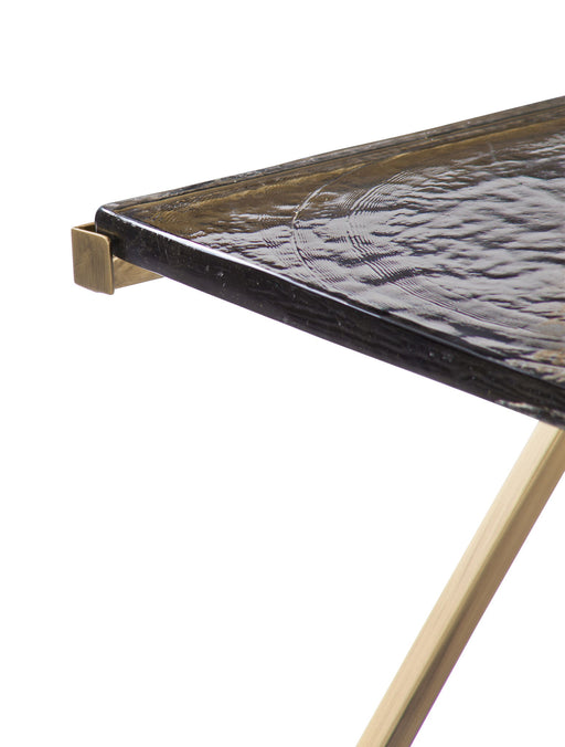 Bassett MirrorThe Corina Scatter Table features a thick, poured glass top that sits inside iron frames with campaign style corner clips. The iron metal table fra...