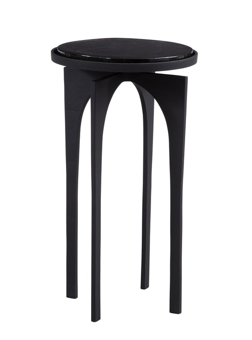 Bassett MirrorMoore - Accent Table - Matte BlackProduct Features Contemporary black metal frame with interlocking arch base Inset cast glass top adds subtle text...