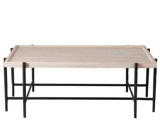 Universal FurnitureThe Theron Cocktail Table artfully juxtaposes light and dark, featuring a serene, lighter Travertine rectangular top that gracefully contrasts with...