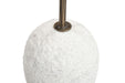 The Aeirith accent table embodies modern sophistication with its unique design and high-quality materials. Its spherical sand-blasted white marble base perfectly complements the live-edge white marble top, creating a stunning focal point for any room. The solid iron frame finished in antique brass adds a touch of warmth and elegance to the overall aesthetic. Crafted with attention to detail, this accent table showcases the natural beauty of marble with its sandblasted texture and distinctive live-edge feature.