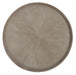 A rounded tabletop meets an angular base with soft curves, delivering style with swagger in the Affinity Round Cocktail Table. The serene color palette of the wire-brushed greige finish on quartered oak veneers completes the soft modern look. The tabletop is inset 3 inches all the way around to create a tray-like appearance.
